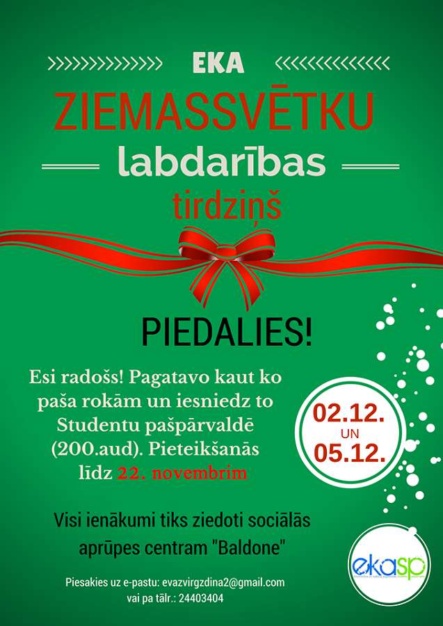 Ļaujieties uzburt Ziemassvētku brīnumu. Piesaki savu dalību, rakstot uz ekassp@gmail.com vai evazvirgzdina2@gmail.com!