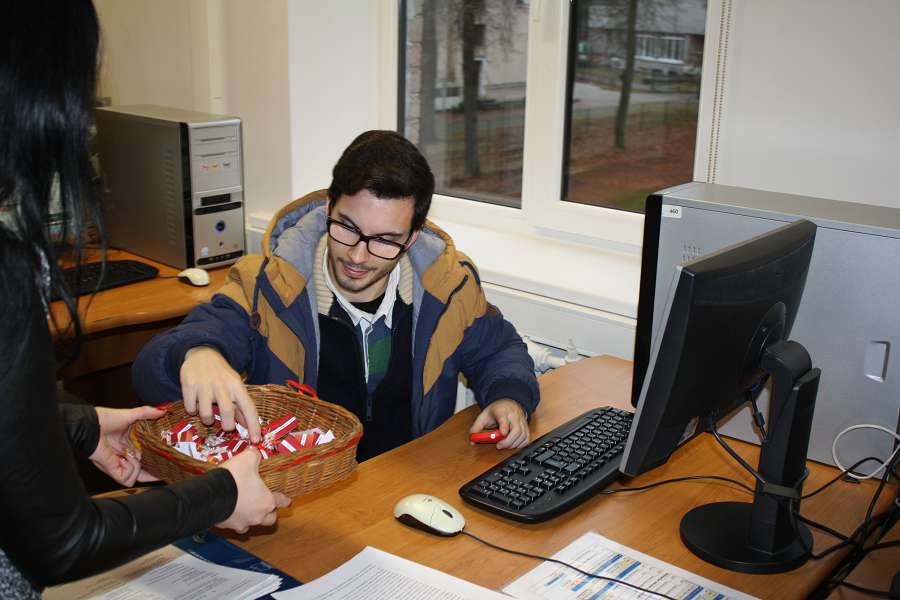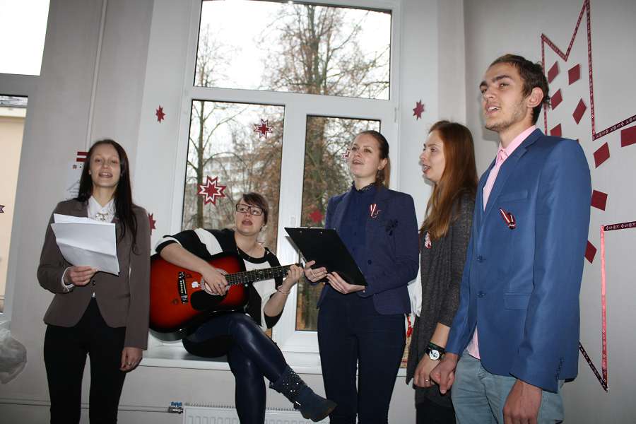 Dalījām nozīmītes ar patiesu sveicienu Latvijas svētkos. Un dziedājām. Gaiteņos, kafejnīcā, administrācijā, pie vadības - visur! Galvenais, ka bijām un esam kopā.