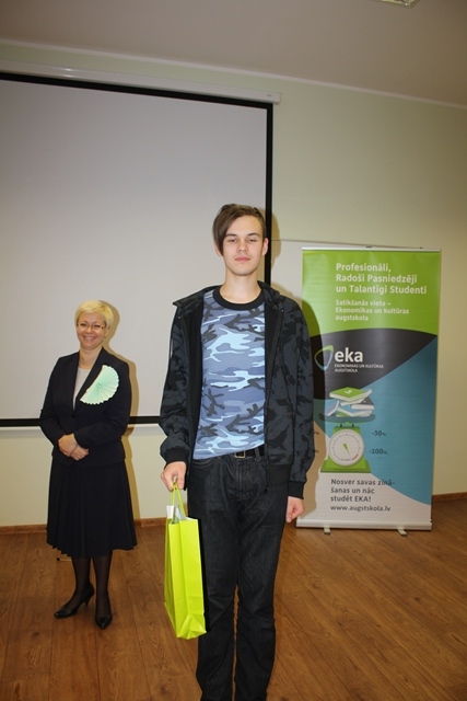 Šo olimpiādi EKA organizēja sadarbībā ar Alberta koledžu (AK) un Pearson Central Europe Representative Office in Latvia. Uzvarētāji ieguva balvas no Ekonomikas un kultūras augstskolas un Alberta koledžas – atlaides studiju maksai un citas balvas. Olimpiādes speciālo balvu no atbalstītāja - Pearson Central Europe Representative Office in Latvia – ieguva Annija Jansone no Saldus novada Druvas vidusskolas.