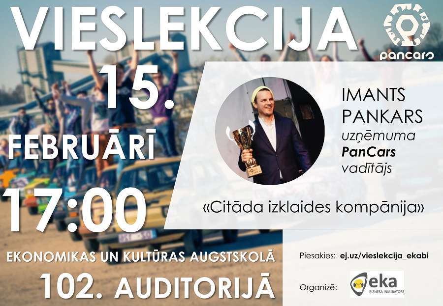 Trešdien, 15. februārī plkst. 17:00 Ekonomikas un kultūras augstskolā 102. auditorijā notiks uzņēmuma PanCars vadītāja Imanta Pankara vieslekcija „Citādu izklaižu kompānija”.