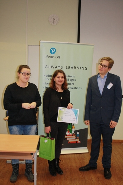 Veicināšanas balvas no „Pearson Central Europe” pārstāvniecības Latvijā saņēma Jānis Dambergs no Vaiņodes vidusskolas un Līva Siliņa no Jelgavas Spīdolas ģimnāzijas.