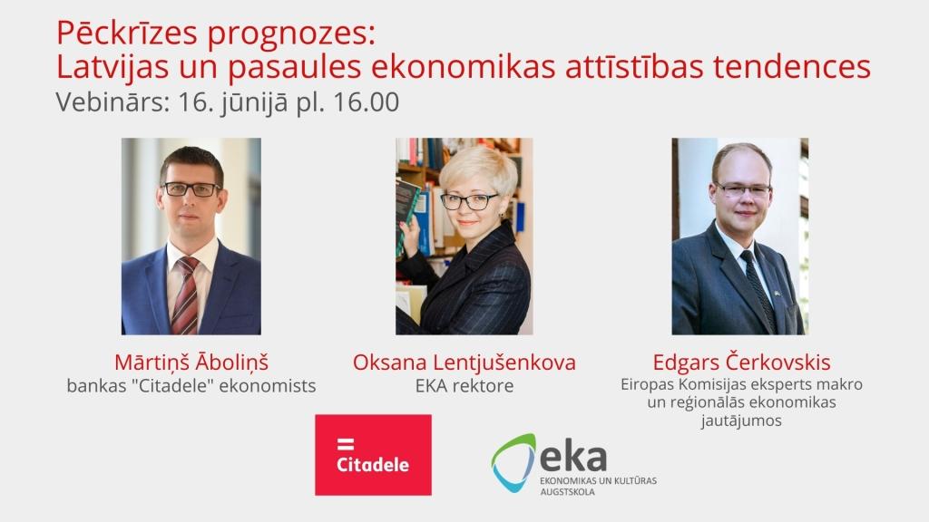 Ekonomikas un kultūras augstskola(EKA) un banka "Citadele" aicina uz bezmaksas vebināru “Pēckrīzes prognozes: Latvijas un pasaules ekonomikas attīstības tendences”. Skatieties šeit.